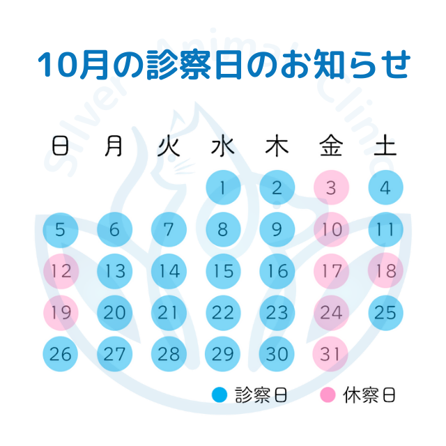 11月の診察日についてお知らせいたします。午前診療の日は12時までの受付となりますので、あらかじめご了承ください。11月9日 ( 日曜日 )11月16日 ( 日曜日 )